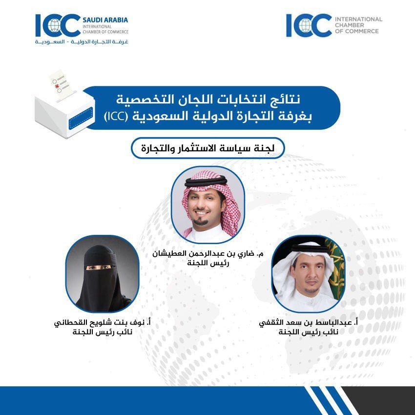 بحضور نائب رئيس مجلس الإدارة أ/ وعد أبونيان تشكيل لجنة سياسة الاستثمار والتجارة في غرفة التجارة الدولية السعودية وتم انتخاب م/ ضاري بن عبدالرحمن العطيشان رئيسًا، و أ/ عبدالباسط بن سعد الثقفي و أ/ نوف بنت شلويح القحطاني نائبين للرئيس.