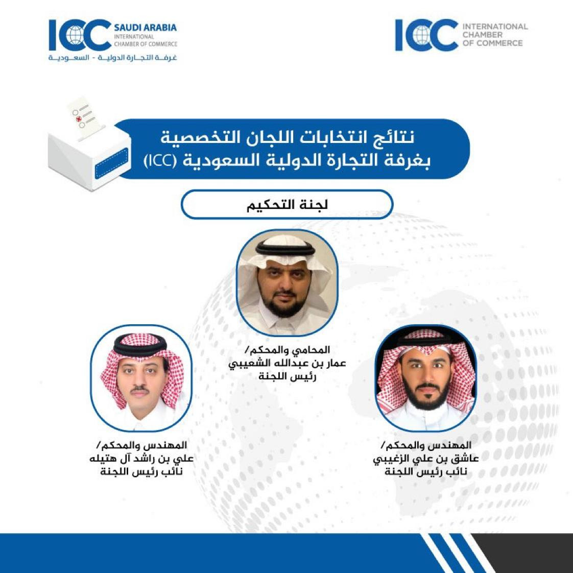 بحضور رئيس مجلس الإدارة المستشار/ سيف بن عبدالله التركي تشكيل لجنة التحكيم في غرفة التجارة الدولية السعودية حيث تم انتخاب المحامي والمحكم/ عمار بن عبدالله الشعيبي رئيسًا، والمهندس والمحكم/ عاشق بن علي الزغيبي والمهندس والمحكم/ علي بن راشد آل هتيله نائبين للرئيس